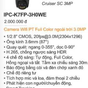 Camera ngoài trời quay quét 360 độ. tầm nhìn ban đêm có màu với tầm xa chiếu sáng 30m. • Cảnh báo chủ động: bật còi hú và đèn chớp xanh đỏ khi phát hiện xâm nhập