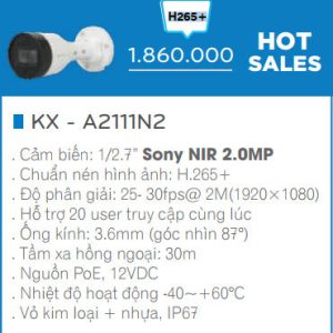 . Camera KBVISION Cảm biến hình ảnh 1/2.7″ 2.0 Mp, max 25/30fps@1080P(1920×1080)