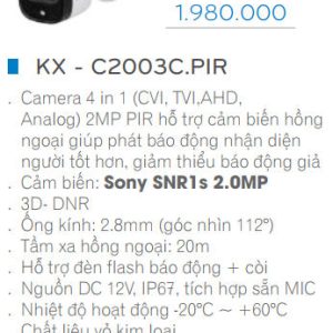 Cảm biến: Sony SNR1s 2.0MP. Ống kính: 2.8mm (góc nhìn H: 99°,V: 72° ). Tầm xa hồng ngoại: 20m. Hỗ trợ đèn flash báo động + còi. Chất liệu vỏ kim loại + nhựa, IP67