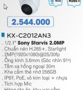 IP CAMERA 2.0MP. Hỗ trợ công nghệ Starlight, hỗ trợ thẻ nhớ lên đên 256GB, tích hợp mic. IP67, PoE, IK10, vỏ kim loại.. Hỗ trợ tính năng thông minh, thiết lập hàng rào ảo, khu vực cấm, tên miền KBVISION.TV