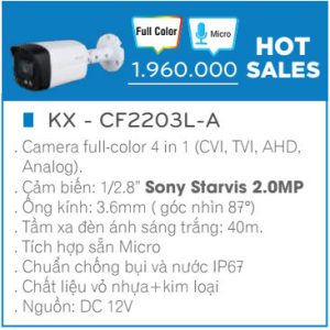 . Camera KBVISION full-color starlight 4 in 1 (CVI, TVI, AHD, Analog)